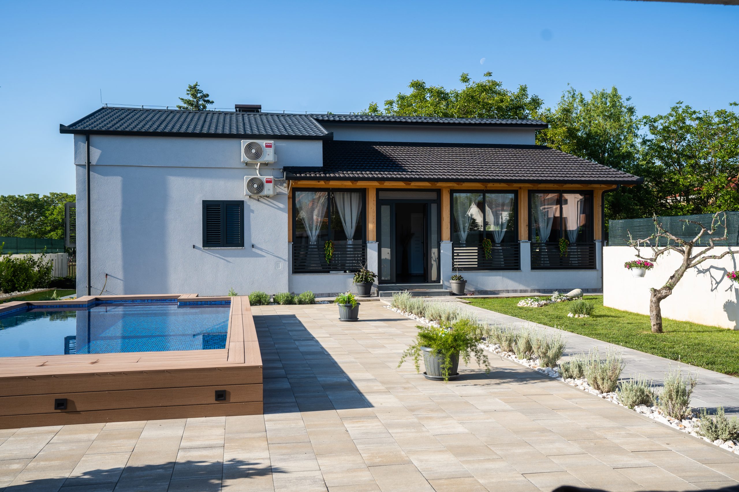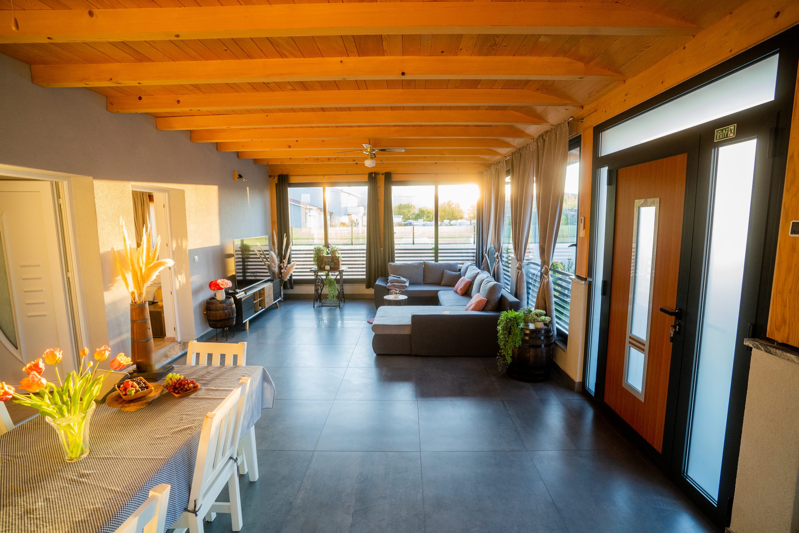 Naša kuća za odmor oduševit će vas moderno opremljenim sobama, svaka s četiri udobna ležaja i vlastitim toaletom. Uživajte u pripremanju obroka u kuhinji koja kombinira rustikalni šarm s modernom opremom. Provedite vrijeme s obitelji u prostranom dnevnom boravku ili se zabavite uz društvene igre koje smo pažljivo pripremili za vas. Ako vam je potreban dodatan ležaj, ne brinite - imamo ih pri ruci za proširenje smještajnih mogućnosti. Za osvježenje i zabavu, na raspolaganju vam je veliki bazen s ugodnom rasvjetom koja stvara opuštajuću atmosferu. Mališanima smo pripremili poseban dječji bazen na umjetnoj travi, zajedno s toboganom i igračkama koje će ih razveseliti. Uživajte u vanjskoj terasi s prekrasnim pogledom na bazen i okolno zelenilo. Naš povrtnjak ispred kuće pruža vam priliku da sami uberete svježe povrće i uživate u autentičnom okusu lokalnih namirnica koje uzgajamo s puno ljubavi za naše goste.